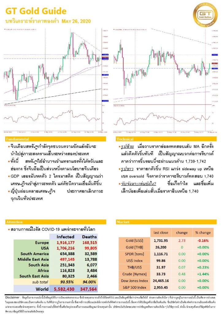 บทวิเคราะห์ทางเทคนิคราคาทองคำ 26 พ.ค. 2563 BY:GT GOLD (สนใจเทรดทองคำแท่งออนไลน์ถูกต้องตามกฎหมาย 02-675-8888 กด 2)พฤษภาคม 26, 2020
