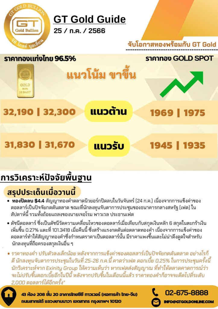บทวิเคราะห์ทางเทคนิคราคาทองคำ 25 ก.ค 2566 BY:GT GOLD (สนใจเทรดทองคำแท่งออนไลน์ถูกต้องตามกฎหมาย 02-675-8888 กด 2กรกฎาคม 25, 2023