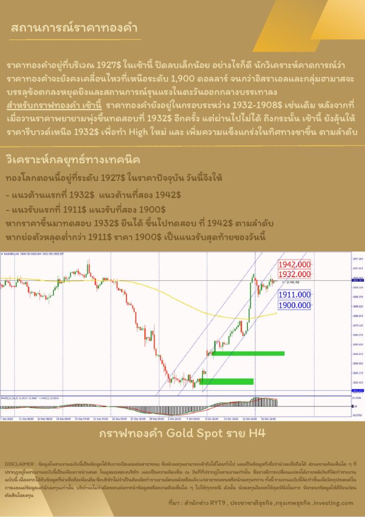 บทวิเคราะห์ทางเทคนิคราคาทองคำ 18 ต.ค. 2566 BY:GT GOLD (สนใจเทรดทองคำแท่งออนไลน์ถูกต้องตามกฎหมาย 02-675-8888 กด 2ตุลาคม 18, 2023