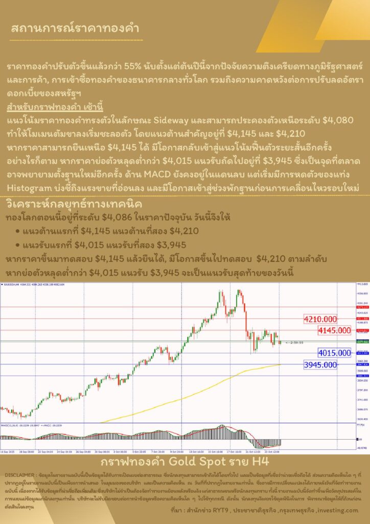 บทวิเคราะห์ทางเทคนิคราคาทอง 27 ตุลาคม 2568 BY:GT GOLD (สนใจเทรดทองคำแท่งออนไลน์ถูกต้องตามกฎหมาย 02-675-8888 กด 2ตุลาคม 27, 2025