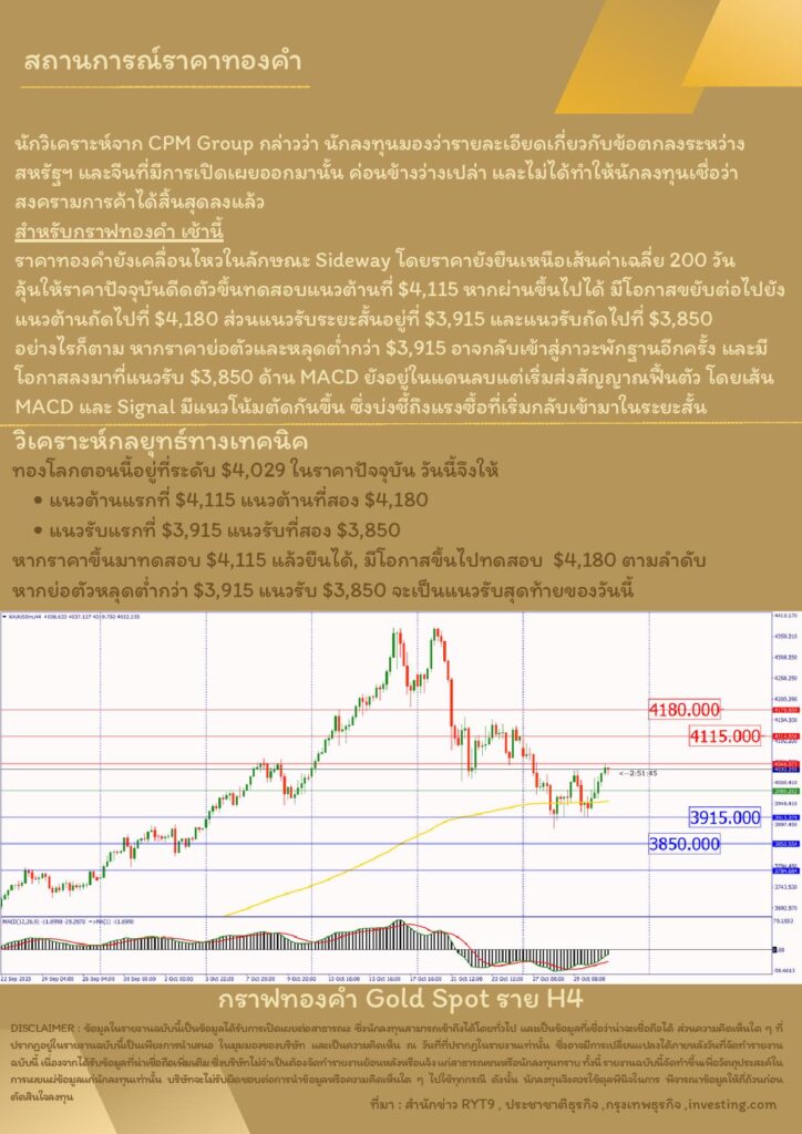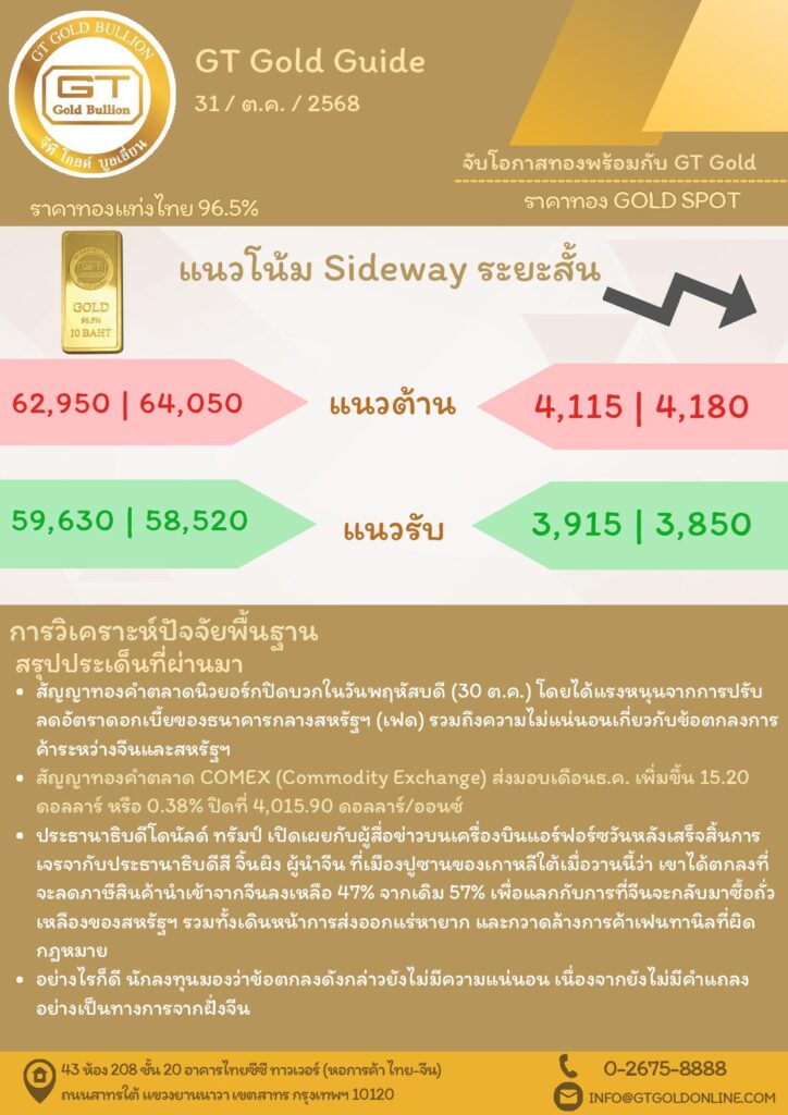 บทวิเคราะห์ทางเทคนิคราคาทอง 31 ตุลาคม 2568 BY:GT GOLD (สนใจเทรดทองคำแท่งออนไลน์ถูกต้องตามกฎหมาย 02-675-8888 กด 2ตุลาคม 31, 2025