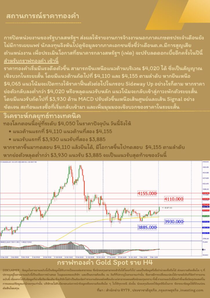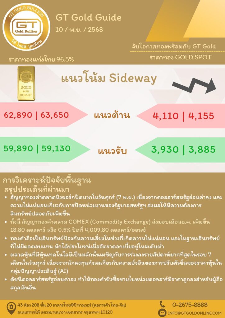 บทวิเคราะห์ทางเทคนิคราคาทอง 10 พฤศจิกายน 2568 BY: GT GOLD (สนใจเทรดทองคำแท่งออนไลน์ถูกต้องตามกฎหมาย 02-675-8888 กด 2