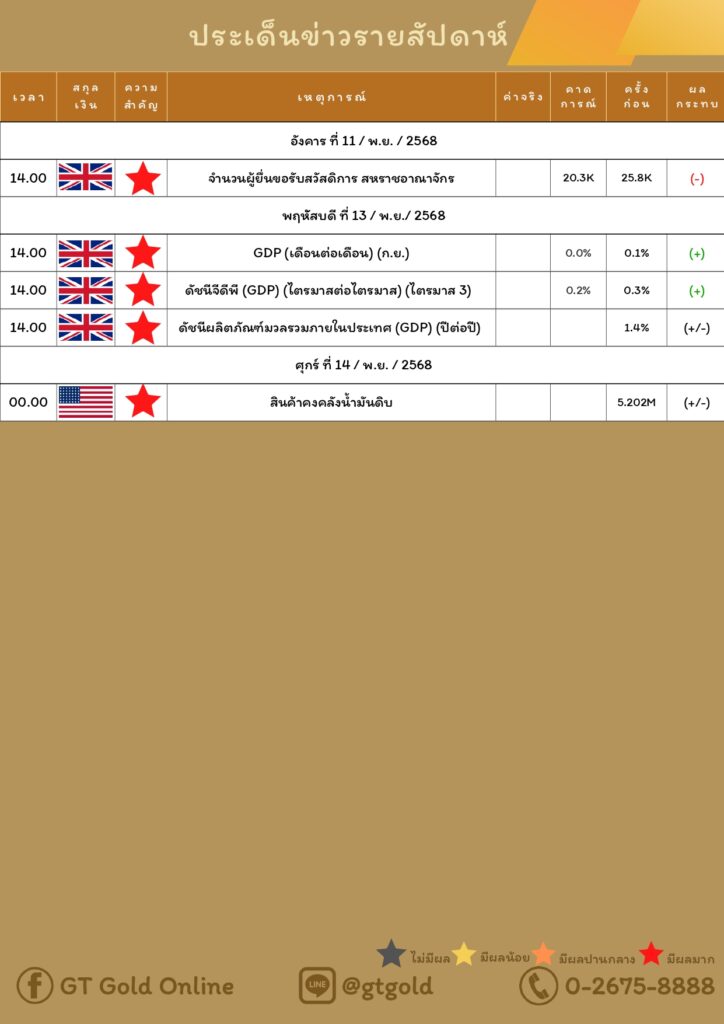 บทวิเคราะห์ทางเทคนิคราคาทอง 11 พฤศจิกายน 2568 BY: GT GOLD (สนใจเทรดทองคำแท่งออนไลน์ถูกต้องตามกฎหมาย 02-675-8888 กด 2พฤศจิกายน 11, 2025