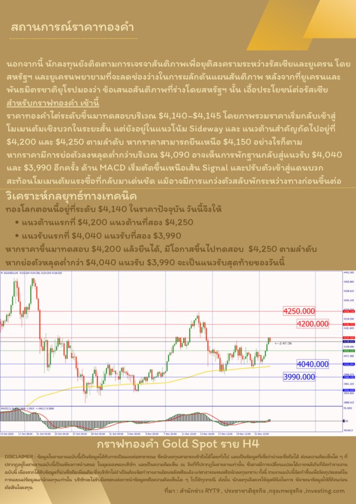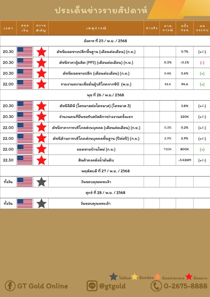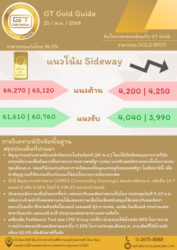 บทวิเคราะห์ทางเทคนิคราคาทอง 25 พฤศจิกายน 2568 BY: GT GOLD (สนใจเทรดทองคำแท่งออนไลน์ถูกต้องตามกฎหมาย 02-675-8888 กด 2พฤศจิกายน 25, 2025