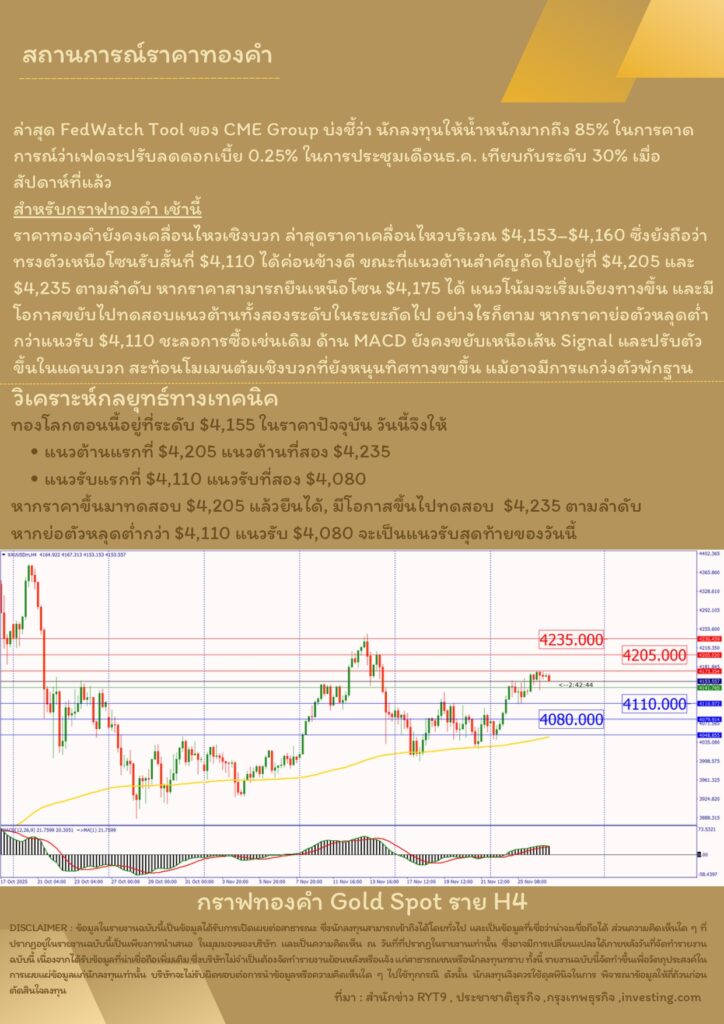 บทวิเคราะห์ทางเทคนิคราคาทอง 27 พฤศจิกายน 2568 BY: GT GOLD (สนใจเทรดทองคำแท่งออนไลน์ถูกต้องตามกฎหมาย 02-675-8888 กด 2พฤศจิกายน 27, 2025