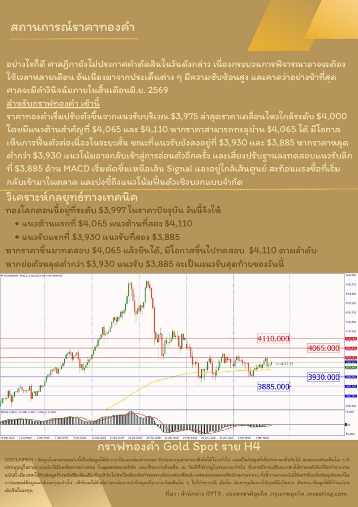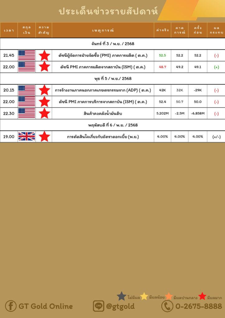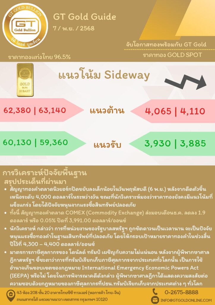 บทวิเคราะห์ทางเทคนิคราคาทอง 7 พฤศจิกายน 2568 BY: GT GOLD (สนใจเทรดทองคำแท่งออนไลน์ถูกต้องตามกฎหมาย 02-675-8888 กด 2พฤศจิกายน 7, 2025