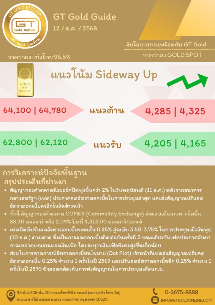 บทวิเคราะห์ทางเทคนิคราคาทอง 12 ธันวาคม 2568 BY: GT GOLD (สนใจเทรดทองคำแท่งออนไลน์ถูกต้องตามกฎหมาย 02-675-8888 กด 2ธันวาคม 12, 2025
