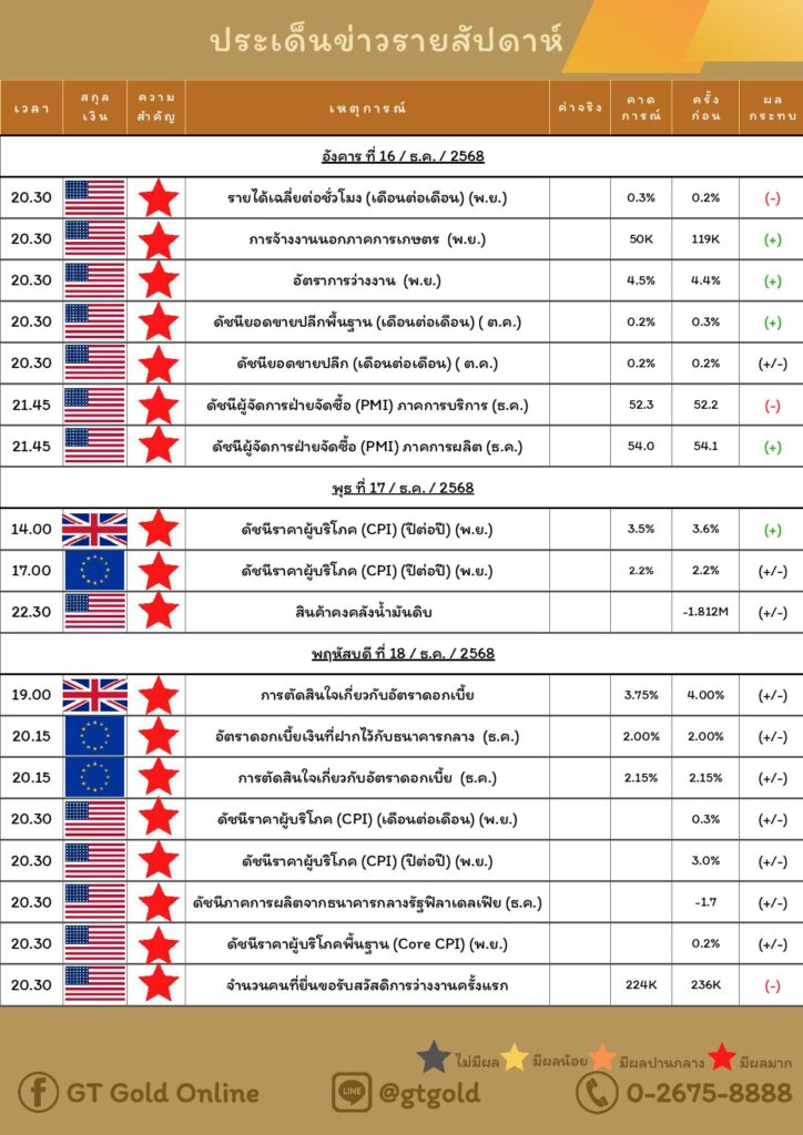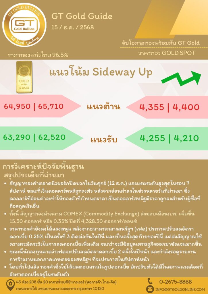 บทวิเคราะห์ทางเทคนิคราคาทอง 15 ธันวาคม 2568 BY: GT GOLD (สนใจเทรดทองคำแท่งออนไลน์ถูกต้องตามกฎหมาย 02-675-8888 กด 2