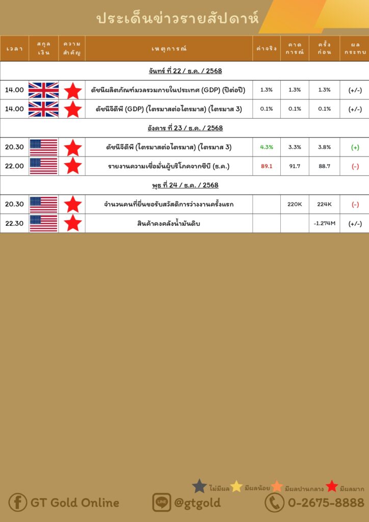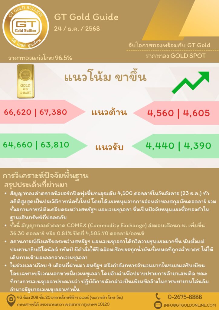 บทวิเคราะห์ทางเทคนิคราคาทอง 24 ธันวาคม 2568 BY: GT GOLD (สนใจเทรดทองคำแท่งออนไลน์ถูกต้องตามกฎหมาย 02-675-8888 กด 2