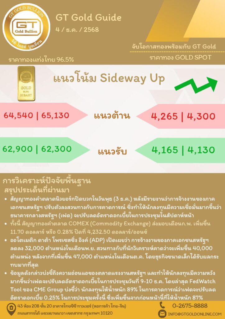 บทวิเคราะห์ทางเทคนิคราคาทอง 4 ธันวาคม 2568 BY: GT GOLD (สนใจเทรดทองคำแท่งออนไลน์ถูกต้องตามกฎหมาย 02-675-8888 กด 2ธันวาคม 4, 2025