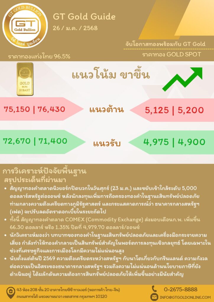 บทวิเคราะห์ทางเทคนิคราคาทอง 26 มกราคม 2569 BY: GT GOLD (สนใจเทรดทองคำแท่งออนไลน์ถูกต้องตามกฎหมาย 02-675-8888 กด 2มกราคม 26, 2026