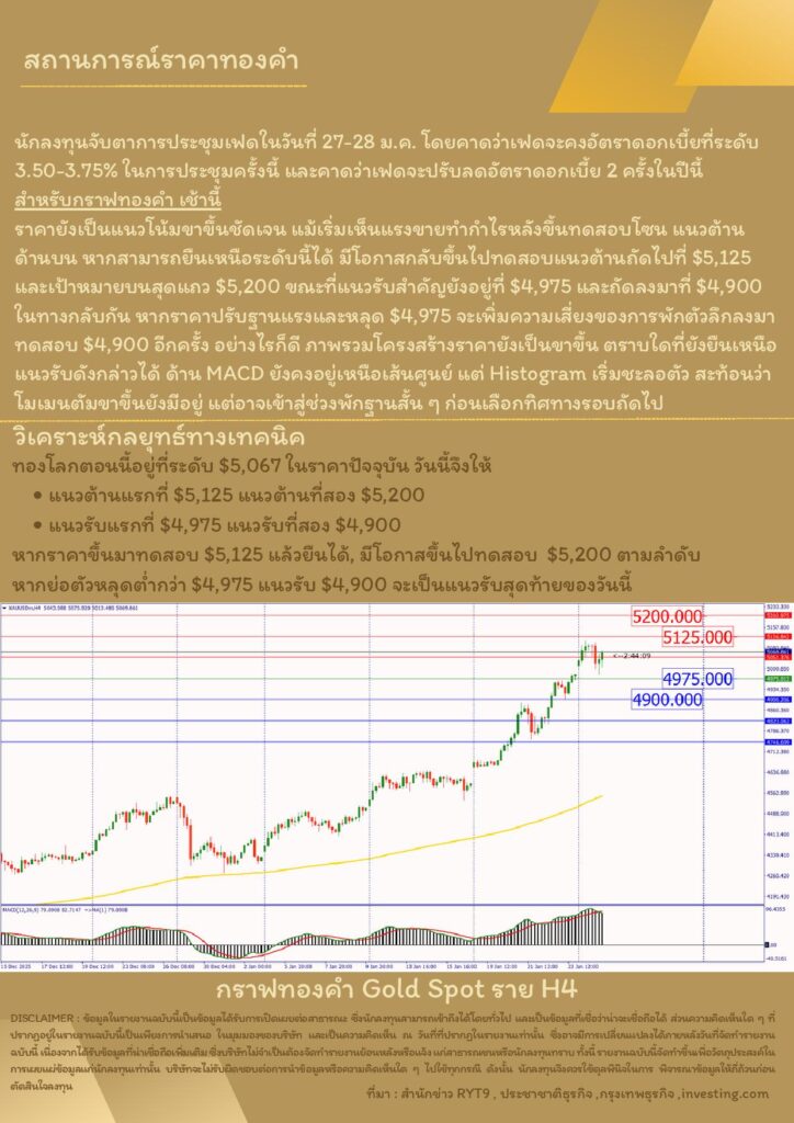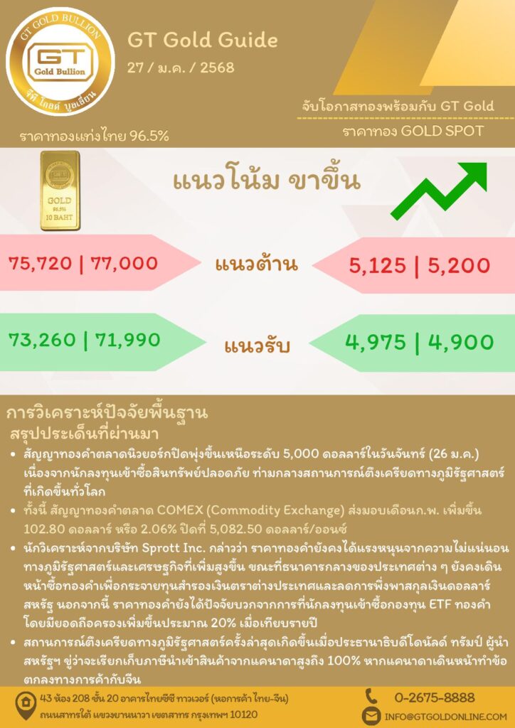 บทวิเคราะห์ทางเทคนิคราคาทอง 27 มกราคม 2569 BY: GT GOLD (สนใจเทรดทองคำแท่งออนไลน์ถูกต้องตามกฎหมาย 02-675-8888 กด 2