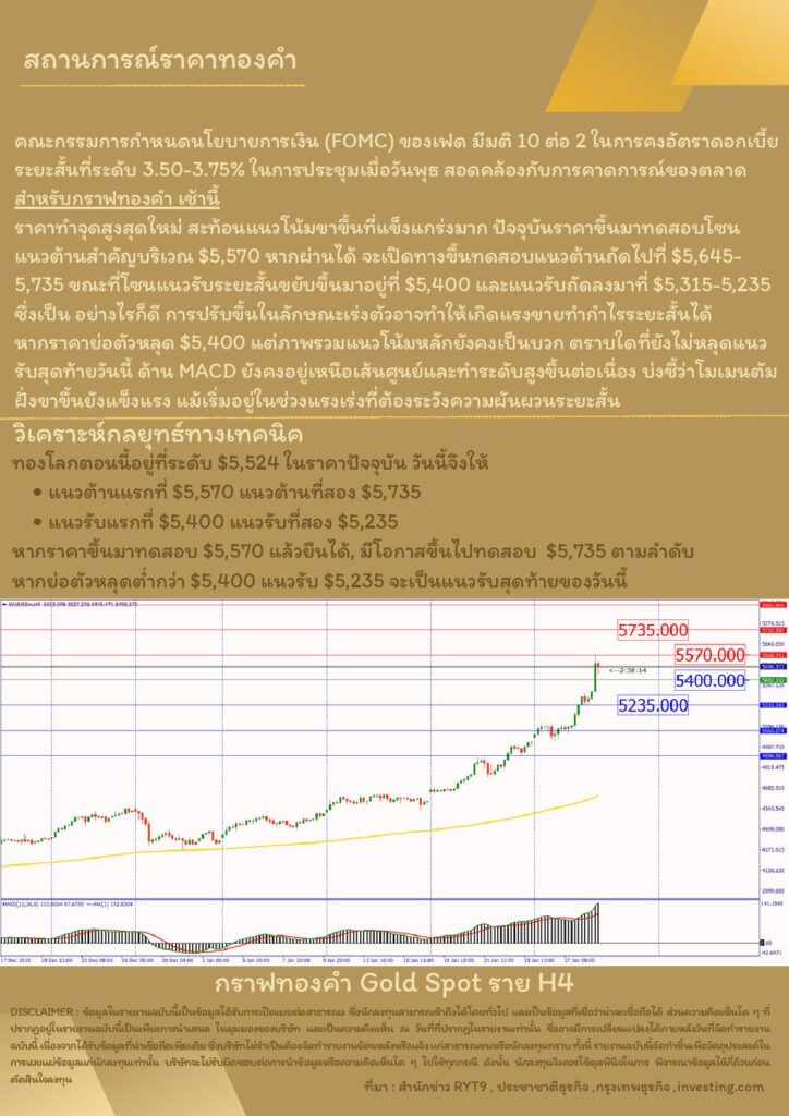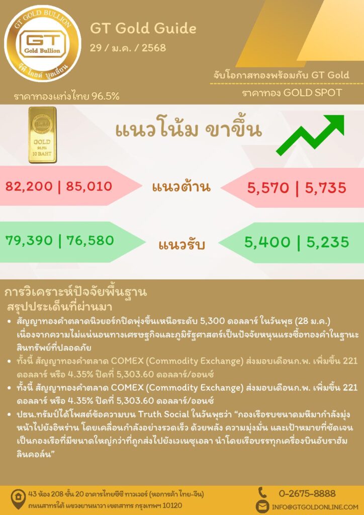บทวิเคราะห์ทางเทคนิคราคาทอง 29 มกราคม 2569 BY:GT GOLD (สนใจเทรดทองคำแท่งออนไลน์ถูกต้องตามกฎหมาย 02-675-8888 กด 2มกราคม 29, 2026