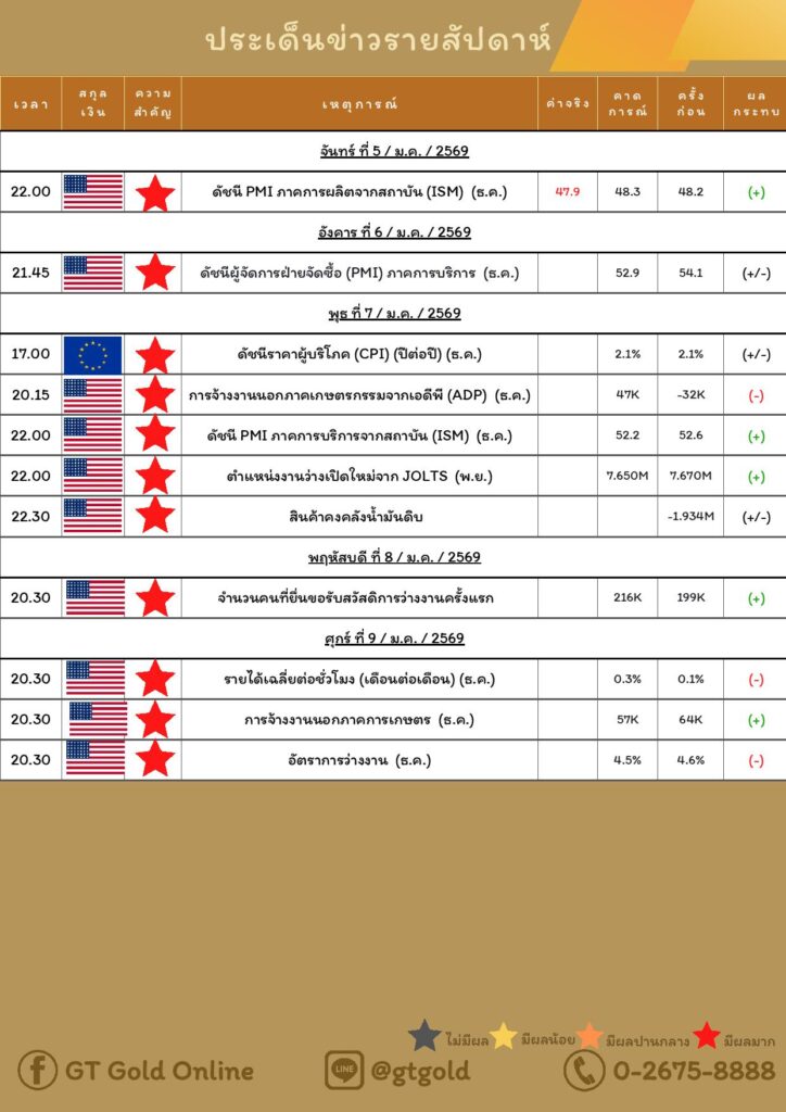 บทวิเคราะห์ทางเทคนิคราคาทอง 6 มกราคม 2569 BY: GT GOLD (สนใจเทรดทองคำแท่งออนไลน์ถูกต้องตามกฎหมาย 02-675-8888 กด 2มกราคม 6, 2026
