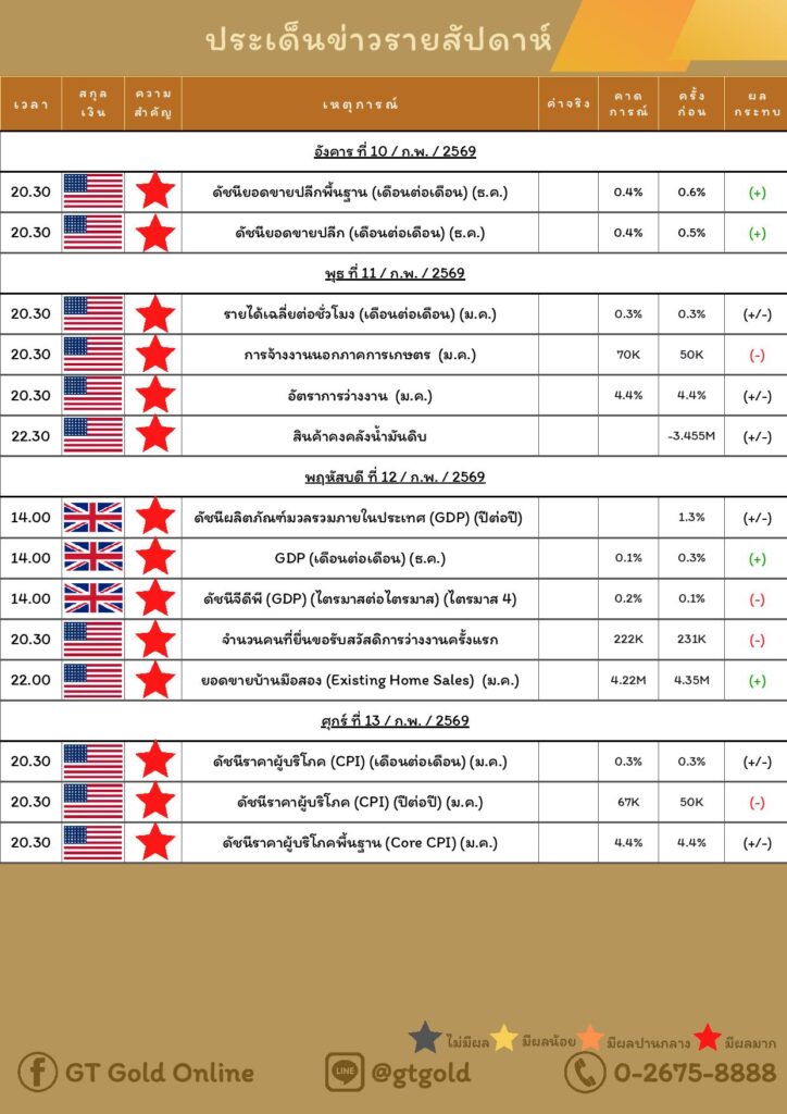 บทวิเคราะห์ทางเทคนิคราคาทอง 10 กุมภาพันธ์ 2569 BY:GT GOLD (สนใจเทรดทองคำแท่งออนไลน์ถูกต้องตามกฎหมาย 02-675-8888 กด 2กุมภาพันธ์ 10, 2026