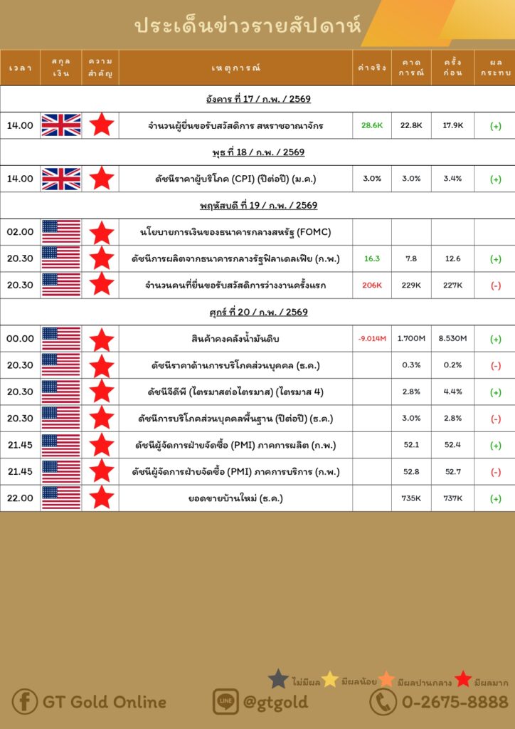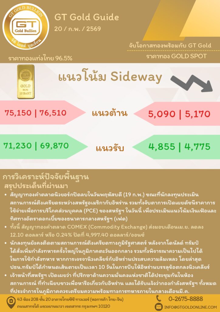 บทวิเคราะห์ทางเทคนิคราคาทอง 20 กุมภาพันธ์ 2569 BY:GT GOLD (สนใจเทรดทองคำแท่งออนไลน์ถูกต้องตามกฎหมาย 02-675-8888 กด 2