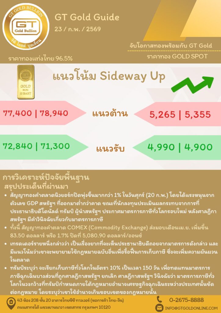 บทวิเคราะห์ทางเทคนิคราคาทอง 23 กุมภาพันธ์ 2568 BY:GT GOLD (สนใจเทรดทองคำแท่งออนไลน์ถูกต้องตามกฎหมาย 02-675-8888 กด 2