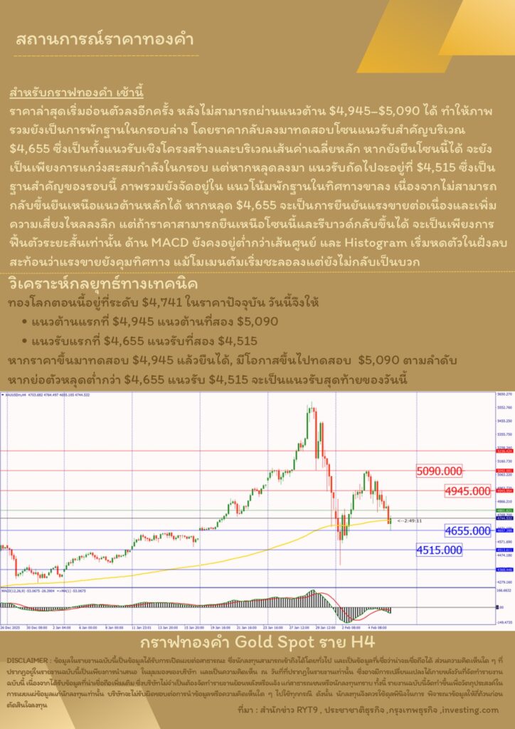 บทวิเคราะห์ทางเทคนิคราคาทอง 6 กุมภาพันธ์ 2569 BY:GT GOLD (สนใจเทรดทองคำแท่งออนไลน์ถูกต้องตามกฎหมาย 02-675-8888 กด 2กุมภาพันธ์ 6, 2026
