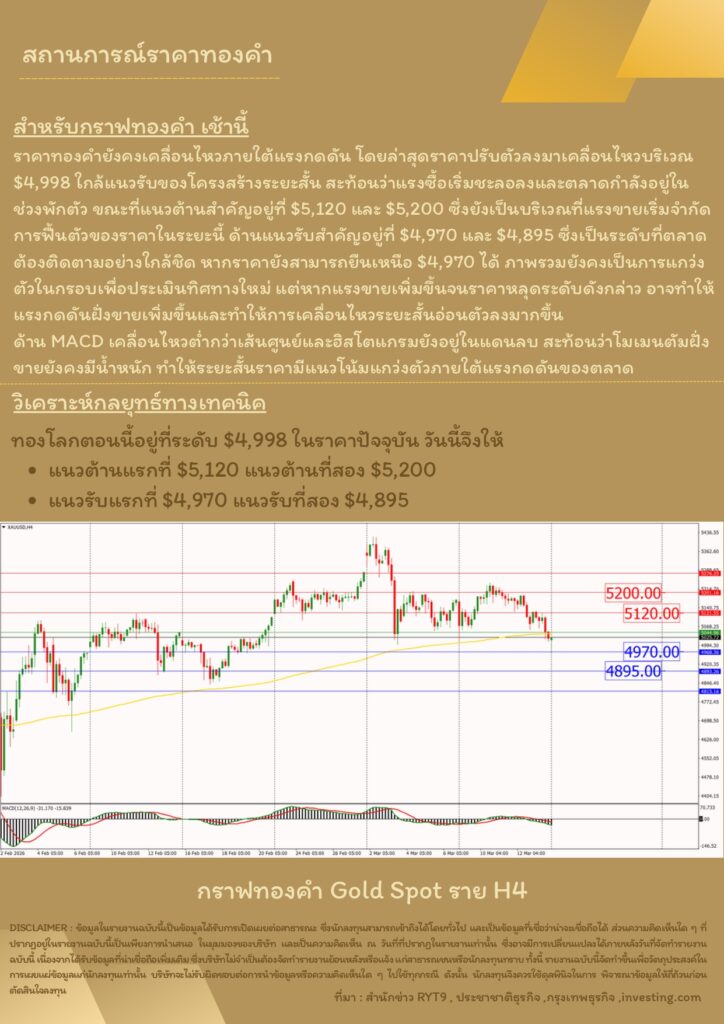 บทวิเคราะห์ทางเทคนิคราคาทอง 16 มีนาคม 2569 BY:GT GOLD (สนใจเทรดทองคำแท่งออนไลน์ถูกต้องตามกฎหมาย 02-675-8888 กด 2