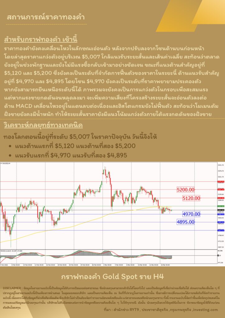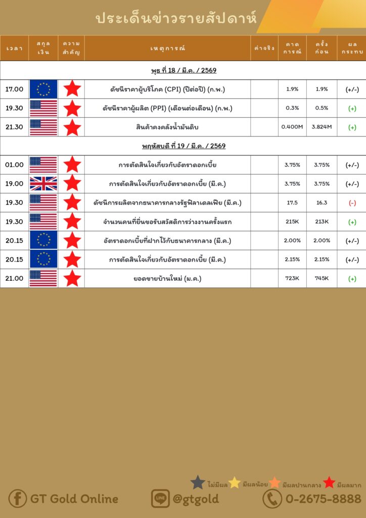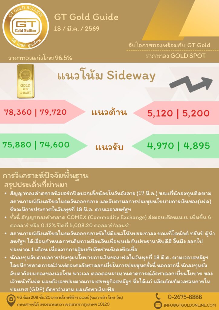บทวิเคราะห์ทางเทคนิคราคาทอง 18 มีนาคม 2569 BY:GT GOLD (สนใจเทรดทองคำแท่งออนไลน์ถูกต้องตามกฎหมาย 02-675-8888 กด 2มีนาคม 18, 2026