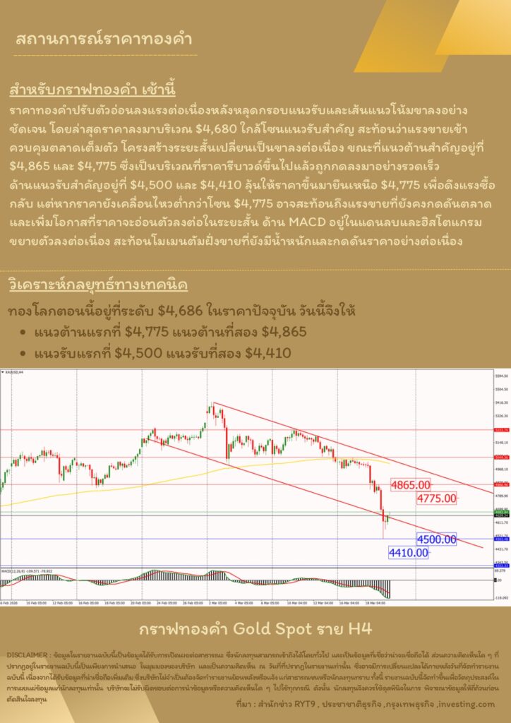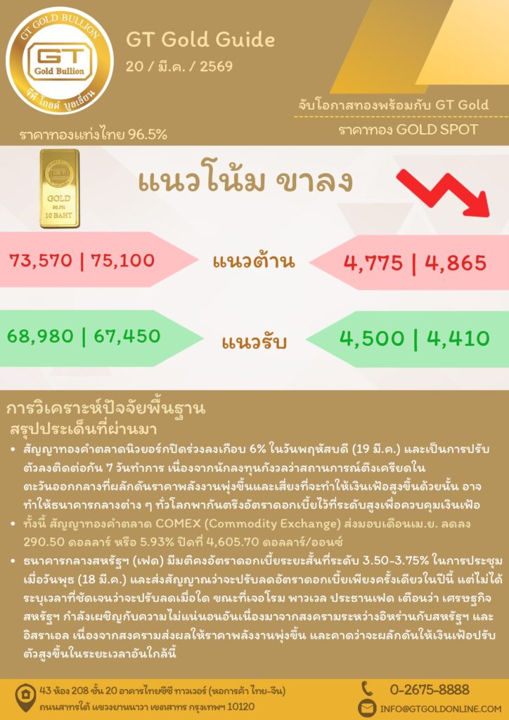 บทวิเคราะห์ทางเทคนิคราคาทอง 20 มีนาคม 2569 BY:GT GOLD (สนใจเทรดทองคำแท่งออนไลน์ถูกต้องตามกฎหมาย 02-675-8888 กด 2มีนาคม 20, 2026
