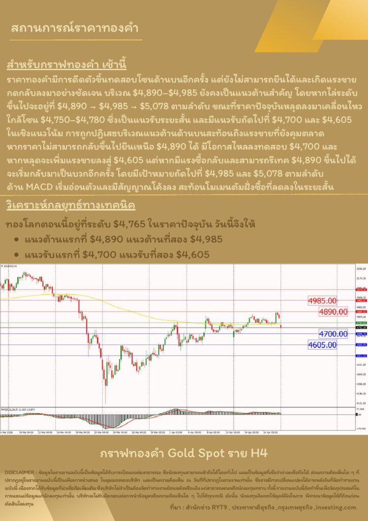 บทวิเคราะห์ทางเทคนิคราคาทอง 20 เมษายน 2569 BY:GT GOLD (สนใจเทรดทองคำแท่งออนไลน์ถูกต้องตามกฎหมาย 02-675-8888 กด 2เมษายน 20, 2026