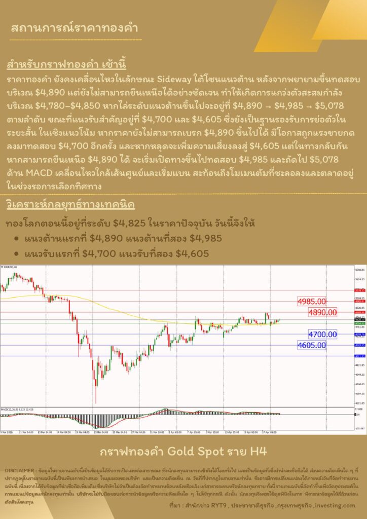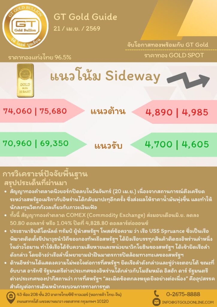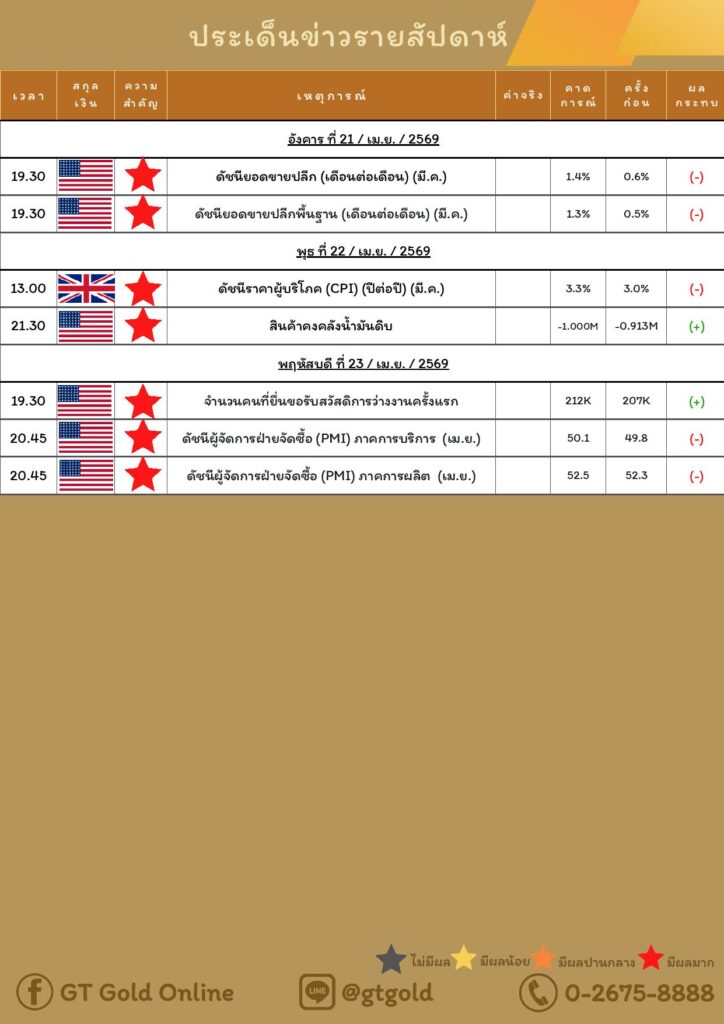 บทวิเคราะห์ทางเทคนิคราคาทอง 21 เมษายน 2569 BY:GT GOLD (สนใจเทรดทองคำแท่งออนไลน์ถูกต้องตามกฎหมาย 02-675-8888 กด 2