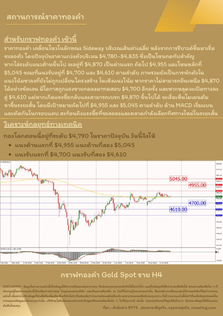 บทวิเคราะห์ทางเทคนิคราคาทอง 17 เมษายน 2569 BY:GT GOLD (สนใจเทรดทองคำแท่งออนไลน์ถูกต้องตามกฎหมาย 02-675-8888 กด 2